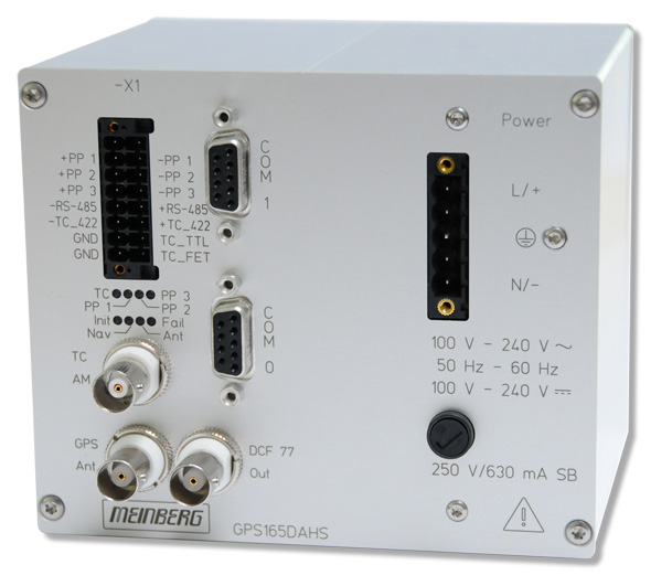 GPS satelitski prijemnik ugrađen je u aluminijsko kućište za montažu na DIN šinu od 35 mm. Na raspolaganju su AC/DC varijanta (GPS165DAHS) i DC varijanta (GPS164DHS/20-60 V DC) internog napajanja. Ugrađeni generator vremenskog koda uključuje modulirane i nemodulirane izlaze IRIG-B ili AFNOR. Dodatne karakteristike modula su: galvanski odvojeni programabilni pulsni izlazi, dva RS232 interfejsa i simulacija DCF77.